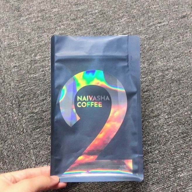 بسته بندی شده هولوگرافیک آلومینیوم ورق طرف گسیت کیف زیپ برای کیسه قهوه با پنجره شفاف